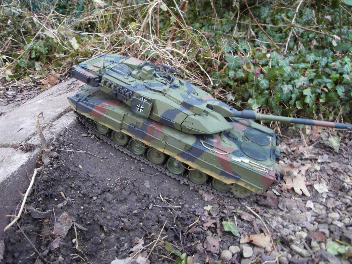 ... habe ich mich da jetzt mal an den Tamiya Leopard 2 A7V herangewagt. Nach so einiger Bauzeit und, ehrlich gesagt, auch so einigen Flüchen habe ich meinen Leo2 inzwischen fertig gestellt. Ich bin mit dem Ergebnis ganz zufrieden.