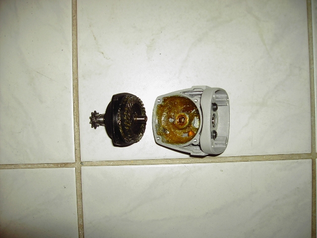 Das Gewinde der Motorwelle zur Befestigung des Kegelrades musste so auch nicht neu geschnitten werden.
