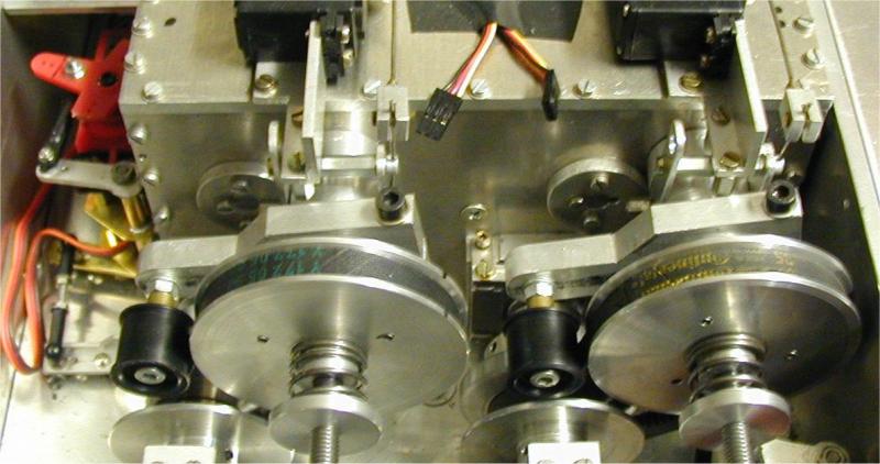 Die Panther-Variomatik ist gesteuert und arbeitet ohne Fliehgewichte. D.h. das Übersetzungsverhältniss kann über ein Servo stufenlos eingestellt werden. Die Abtriebsscheibe hat wieder nur eine Feder zum zusammendrücken. Leider liegt die Panther-Variomatik seit mehreren Jahren ungetestet brach, bin aber zuversichtlich dass sie funktioniert.