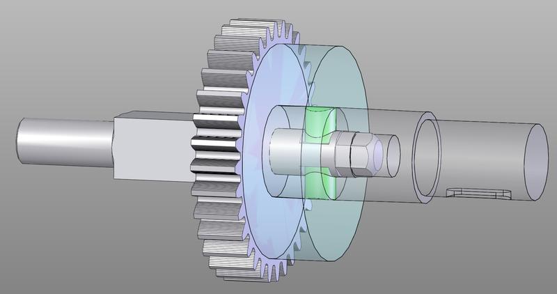 Dadurch halbieren sich die Drehmomente im Getriebe, und das Drehen auf der Hochachse wird deutlich kräftiger. Als ausgleich mußt du dann die Schaltklaue von 2:1 auf die Zähne mit 1:1 Übersetzung umsetzen.