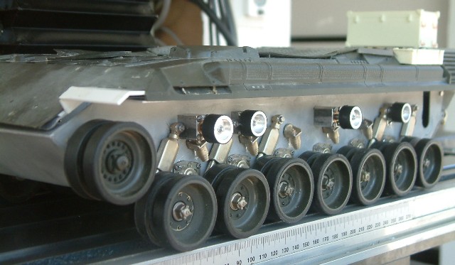 nein momentan steht diese Baustelle Ich warte noch auf die vorderen Schürzen die wir gerade in Gummi gießen lassen. Somit wäre dann die Wanne mit Fahrwerk eigentlich abgeschlossen. Dann kommt noch mal der Turm unters Messer, da gefällt mir die Bewegung der BK noch überhaupt nicht, muss da noch mal was mit einer anderen Umlenkung oder sogar mit einem anderen Servo machen. Dann wäre auch der Turm fertig. Derzeit will ich aber erst einmal meine Zugmaschine vom SLT fertig machen und danach geht es sicher am Geppi weiter !!!!