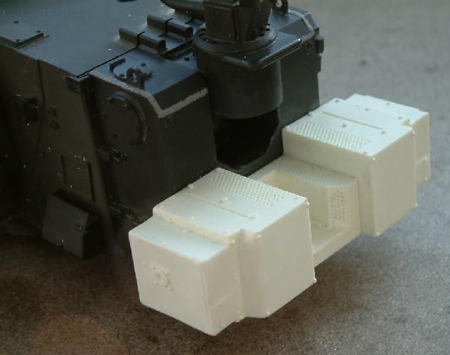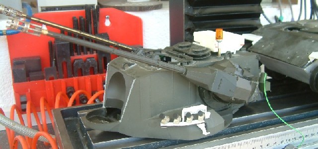 Als nächstes habe ich mich um den Turm und seine Anbauteile gekümmert. Da es ja ein A2 werden soll kommen hier die Resinteile von uns AFV-Model zum Einsatz. Mit diesen zusätzlichen Kisten, Klimaanlagen ect. sieht der Geppi richtig wuchtig aus was mir sehr gut gefällt.
