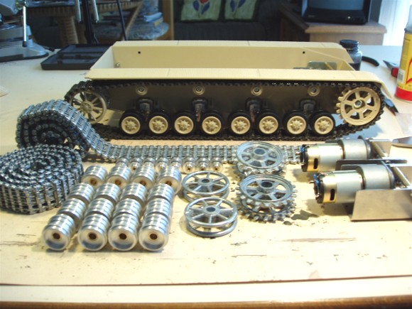 Hintergrund der Fragerei: Bei mir im Keller liegt ein StuG mit Metallketten, Federung und WECOHE-Laufrollen, das noch auf seine Fertigstellung wartet.