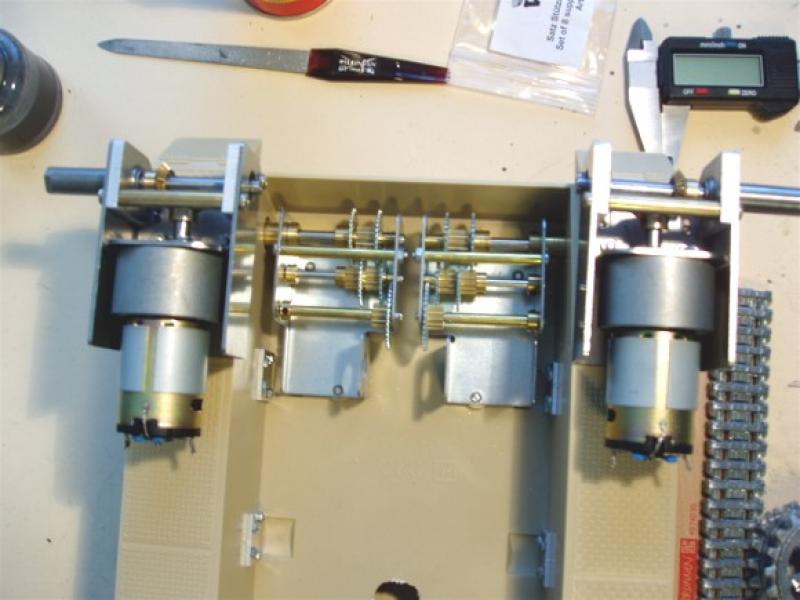 Aus diesem Grund werde ich die Wanne mit einem Aluboden und seitlichen Verstärkungen, speziell an den beiden Vorgelegen stabilisieren müssen.
