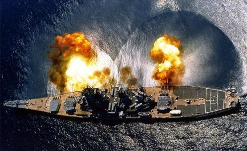 gehe ich richtig in der Annahme, das es sich bei dem Schiff, das die Breitseite auf Deinem Foto abfeuert, um die New Yersey handelt??