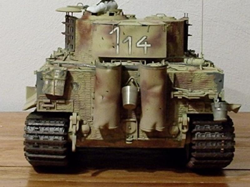 im Prinzip hast Du recht mit dem Verschlammen. So kurz nach der bzw. noch während der Schneeschmelze war der Tiger mit Sicherheit ziehmlich eingesaut. Aber alle meine Versuche, ein Modell zu verschlammen, ohne das es dunkel oder einfach oll wird, sind bei mir nicht zweifelsfrei ausgegangen. Daher habe ich hier das Risiko nicht eingehen wollen und mich entgegen den historischen Zwängen für einen hellen Farbton entschieden. Wenn ich das Modell noch mit dem letzten Finish vergeigt hätte, hätte ich mir echt in den A... gebissen. Gut sieht man die helle Patina auch auf dem folgenden Foto vom Heck.