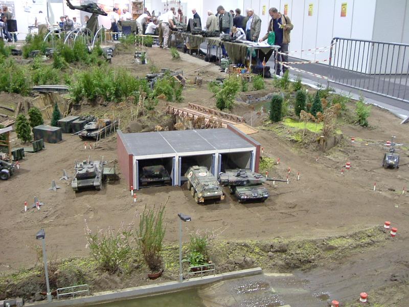 Wir haben dank der Aufteilung der RC-Modelle in der Halle sicher wieder nur wenige Fahrzeiten mit den Modellen auf unserem Diorama/Gelände. Die Erfahrung der letzten Jahre zeigt, daß wir aller 2h eine halbe Stunde fahren können. Ein "wildes" Rumgegurke machen wir seit einiger Zeit nicht mehr, sprich: Während der Fahrzeiten werden einzelne Modell vorgestellt (Moderation) und die anderen stehen zu dieser Zeit. Da wir natürlich nicht nur 1 Modell, sondern mehrere vorstellen, wird die Zeit schon knapp.