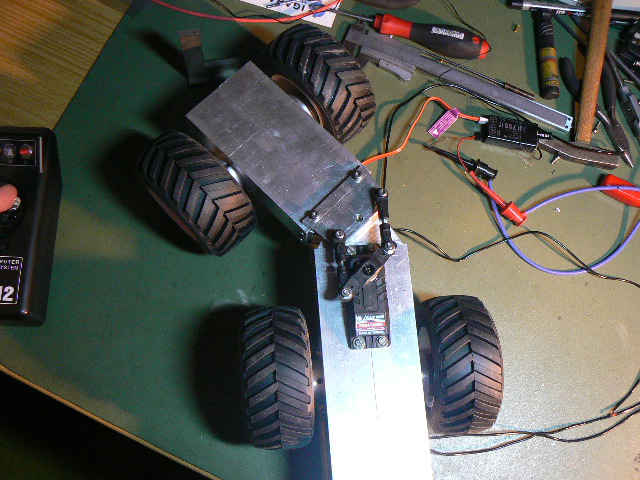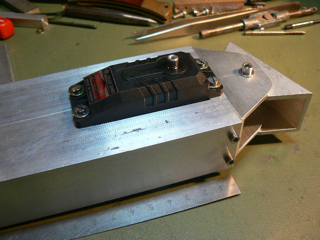 Foto vom Hinterteil mit eigelassenen Servo und Knickgelenk