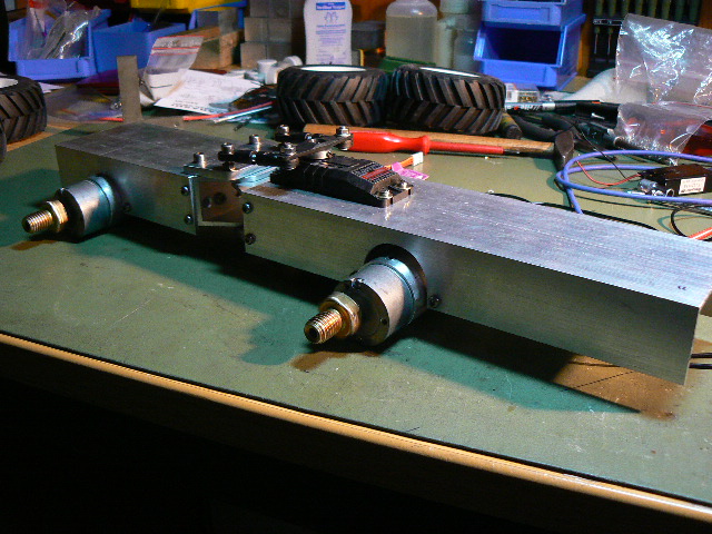 Motoreinheiten im Alurohr Wandstärke 5mm fixiert, Hinterachse pendelnd
