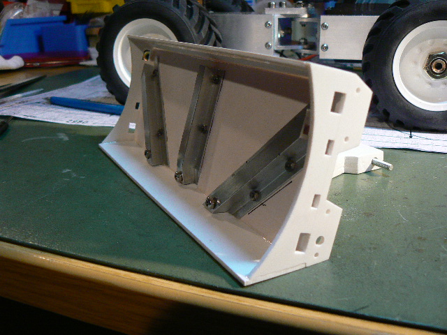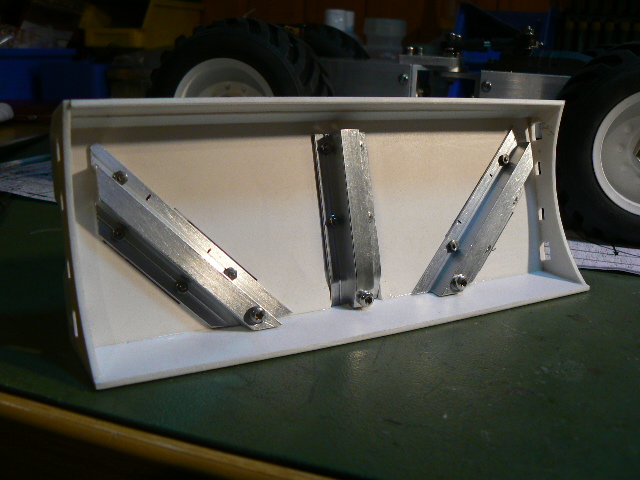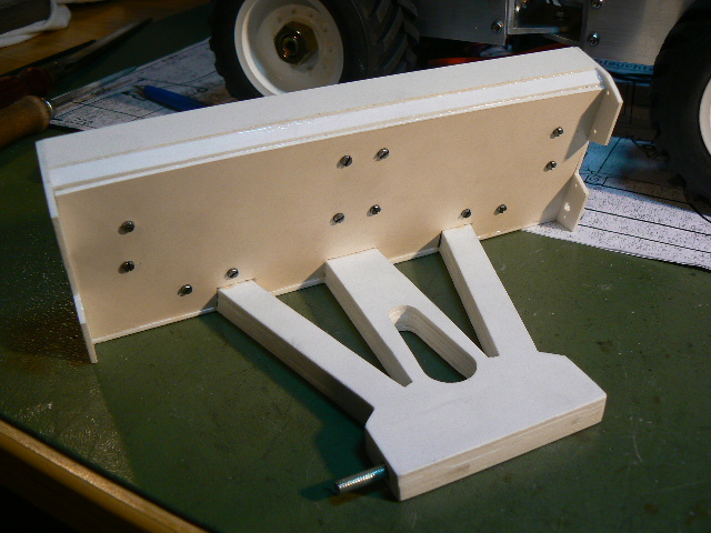 ........der nächste Step ist das Räumschild. Statt dder Aluversion gibt es jetzt eine aus Poly. Allein schon um es etwas scaler gestalten zu können. Materialstärke ausschließlich 2mm, aber in mehreren Schichten verbunden.