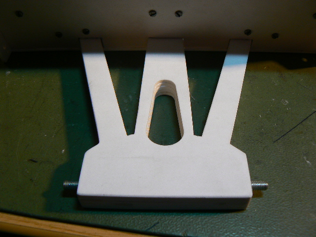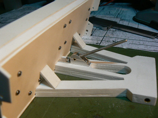 Die Stabilität wird durch Aluprofil im Innern des Schildes erreicht. Evntl. habe ich vor das innere Volumen auszuschäumen. Hinten am Drehpunkt ist im Poly eine Messingrohr 5x0,5 eingelassen. Mit einer M4 Gewindestange wird es dann im Hauptrahmen abgefangen.