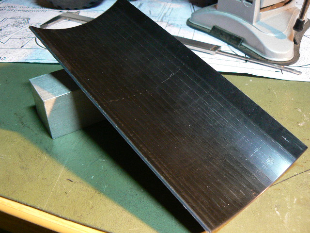 Die vordere Fläche des Schilds hab ich aus schwarzem Poly vorgebogen, da der Lack geht mit der Zeit flöten geht und in weiß würds dann kagge aussehen.