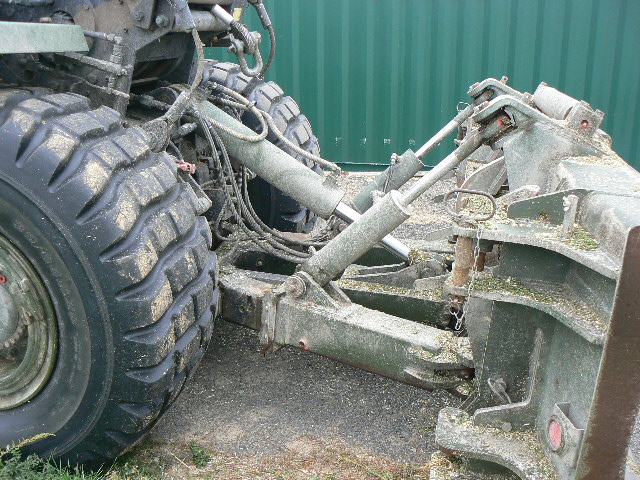Als Vergleich mal ein Original.... mit ausgeklappten Schildverbreiterungen! in der Mitte ist der große Hubzylinder für das komplette Schild zu sehen. Jeweils außen die Tiltzylinder. In den Tragarmen befinden sich je ein weiterer Zylinder um den Anlenkwinkel zur Fahrzeuglängsachse zu verändern.