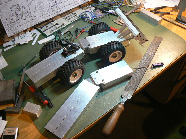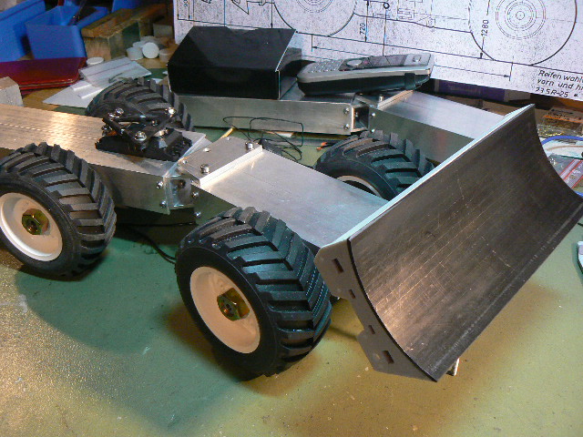 Mittlerweile ist das Räumschild im groben feddich verklebt. Ein parr Wäscheklammern hielten den Schrott zusammen.