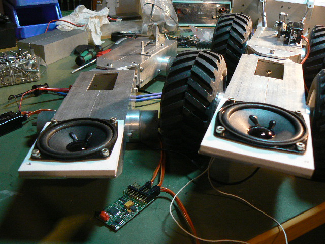 sein Zwilling noch ohne Puschen und im Vordergrund das kleine TBS Mini Modul von T.Benedini. Es hat sagenhafte 1,2W Ausgangsleistung. Aber ...... das Dingen brüllt echt laut genuch....