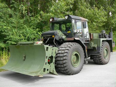 Leider sind die Fahrzeuge kaum noch in der BW zu finden....... aber z.B. bei großen Biogasanlagen werden sie verwendet um die riesigen Maissilagehaufen aufzutürmen und zu komprimieren.