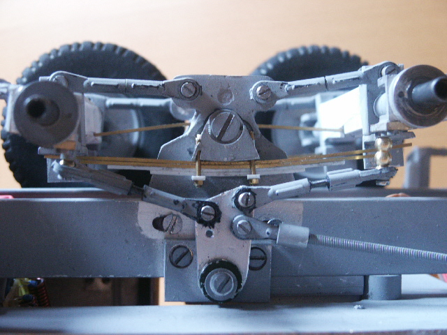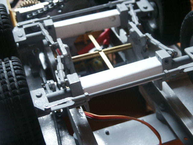hier ist nun eine Nahaufnahme von den Lenkgestängen und den Anlenkungen an den Achsen.