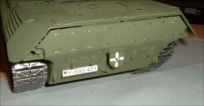 Die Schäkelhalter wurden auch noch einmal neu positioniert , dabei der Spalt an der Seite zugespachtelt und die Nummernschildhalterung angebracht. Den Haaken der Wanne,welcher in dem Spalt anliegt,habe ich abgetrennt.