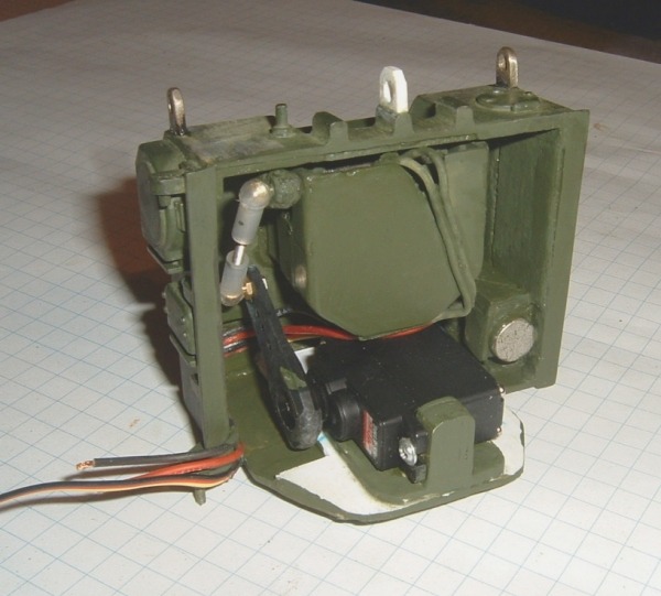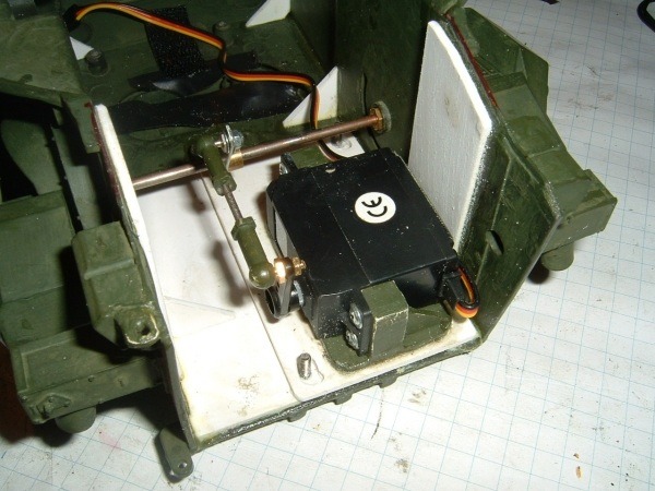 Habe die BK´s mit einem Servo angesteuert,das Radar mit einem neuen Motor versehen ,dabei dan n gleich für das hoch/runter klappen vorbereitet ,die Hecktür am Turm mit einem Magneten zum verschließen versehen und dem Turmgetriebe-Servo habe ich einen Regler mit eingebaut.