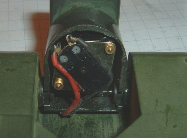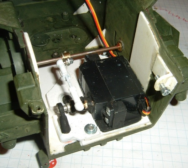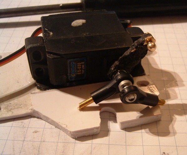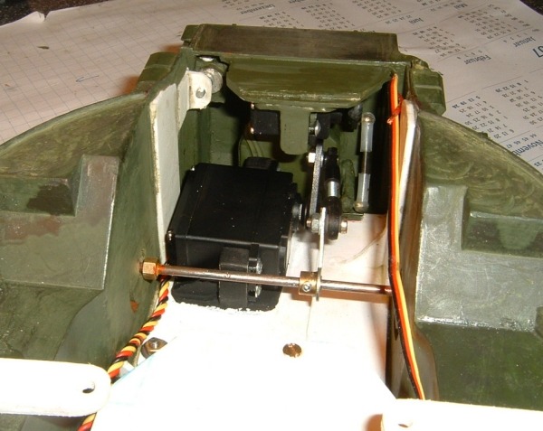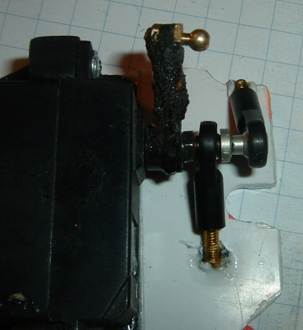 Auf diesem Bild erkennt mann gut die Befstigung des Servo-Arms für das hoch/runter klappen.