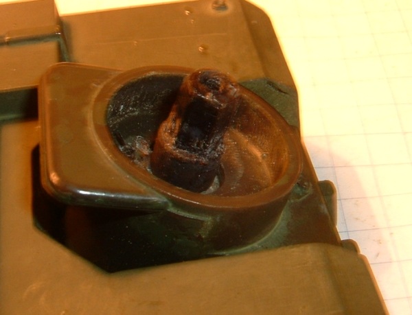 Um den Radar-Schirm mit dem Motor zu verbinden musste erstmal diese Aufnahme an der Motor-Welle eckig geschliffen werden.