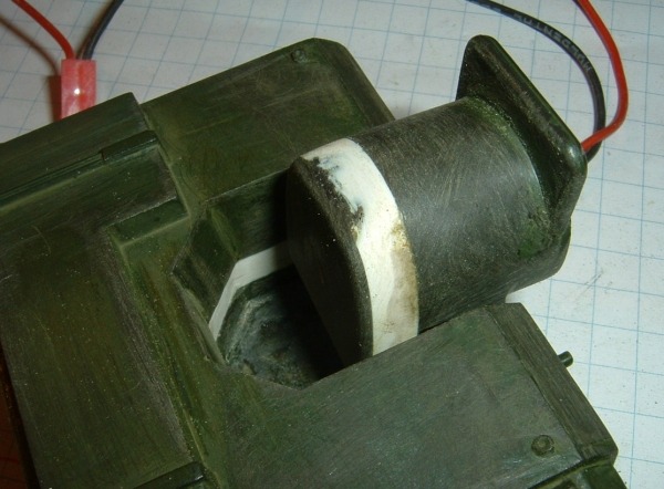 Da der Motor aus dem Gehäuse leider zu weit heraus guckt,passt die oringale Verschlusskappe nicht mehr.Ich habe sie dann einfach mittels Plastik-Sheet verlängert.