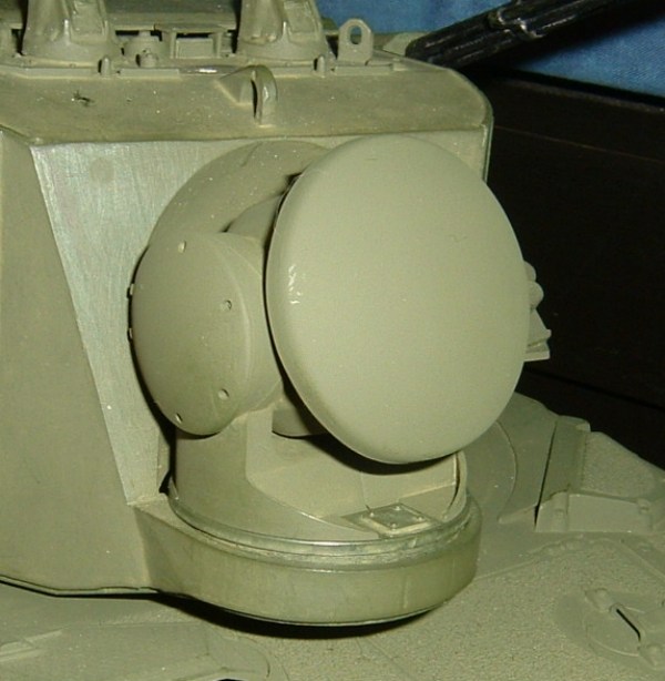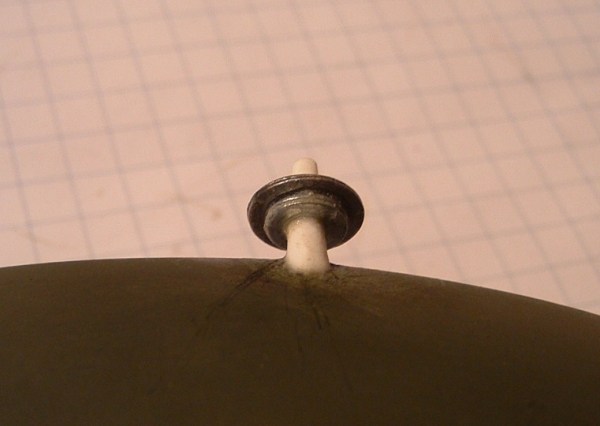 Einfach ein 3mm Kunststoffrohr genommen,oberen Teil auf 2mm abgedreht , jeweils 2 Scheiben M3 und M3-gross drüber geschoben ,verklebt,anschließend verspachtelt,fertig.Das rohr hat wieder einen kleinen Metalldraht in der mitte,welcher dann auch in der Radarschüssel steckt um nicht so leicht abzubrechen.
