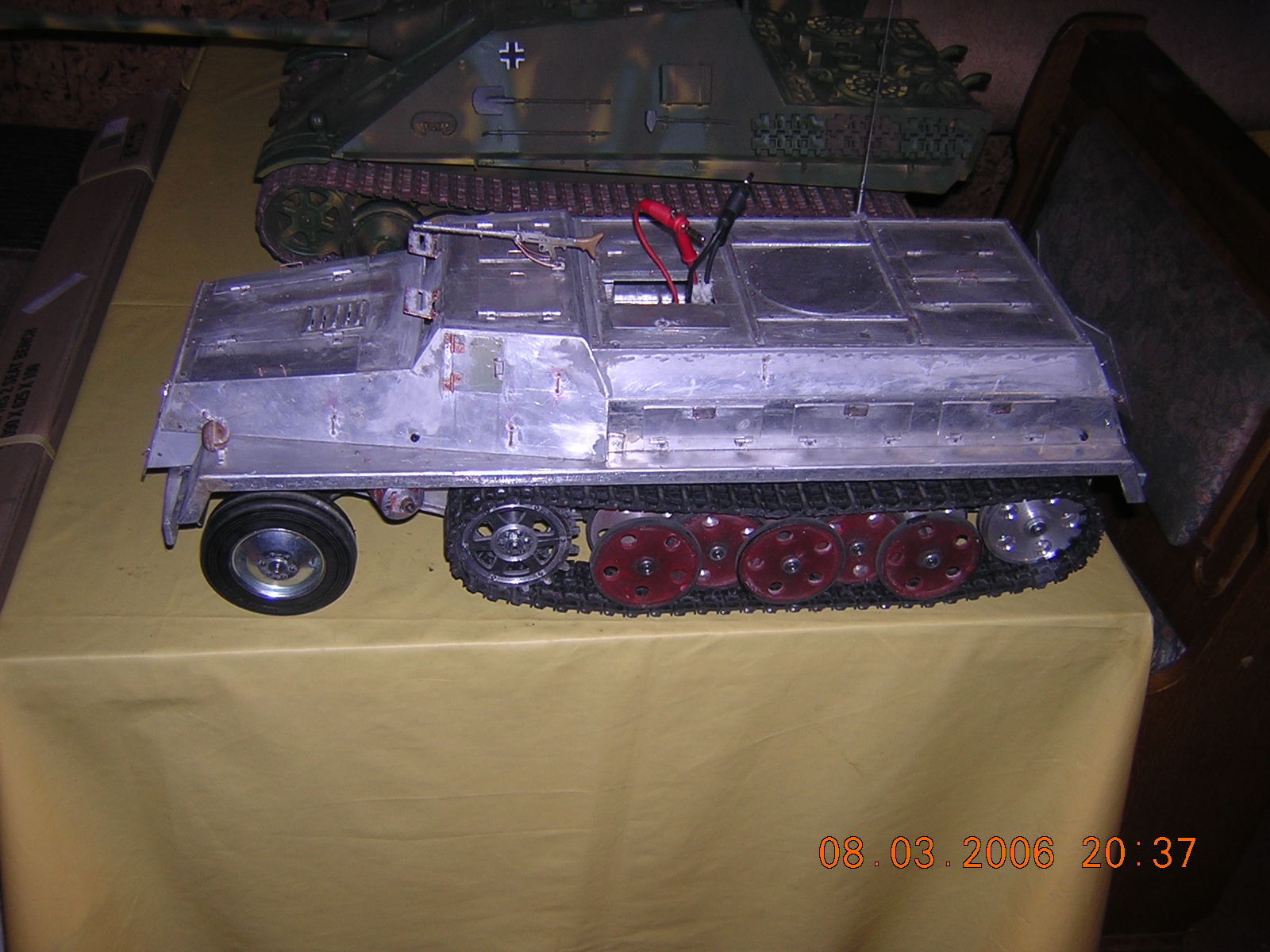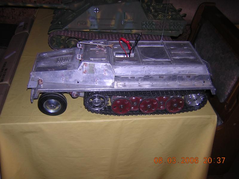 danke für deine Tipps. Die Räder ( Aussehen und Durchmesser) habe ich aus dem Internet von Bildern des Originals und von einem kleinen Modell abgeschaut, werden natürlich noch lackiert. Da ich fast nur Modelle baue, die es als Bausatz nicht gibt oder solche die noch keiner gebaut hat ist alles eine Gradwanderung. Im Rahmen meiner Möglichkeiten, gebe ich mir die größte Mühe es so Original wie möglich zu gestallten. Ganz grossen Wert lege ich auf den Antrieb, deshalb auch meine Frage. Bei den Panzern habe ich ja mein eigenes System, bei Halbkette ist es schon ein bißchen schwieriger, wie du sicher selbst auch weißt. Nochmal danke, ich werde es mit dem Doppelfahrtregler probieren.