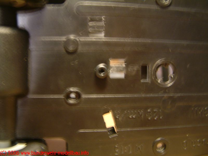 Die Klarsichtteil für den Rückfahrscheinwerfer und die Nebelschlußleuchte habe ich aus einer CD-Hülle (die geriffelte Seiten) gesägt/gefeilt und von hinten einfach eine LED eingeklebt. -- Gruss aus dem Harz