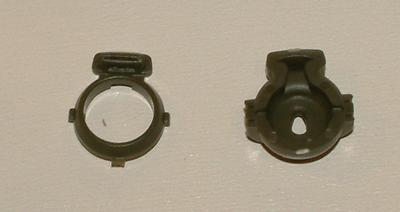 Das Neusilber-Tarnlicht wurde vom Halter entfernt und in die Mitte ein Loch gebohrt und das neue Tarnlicht aufgeklebt.