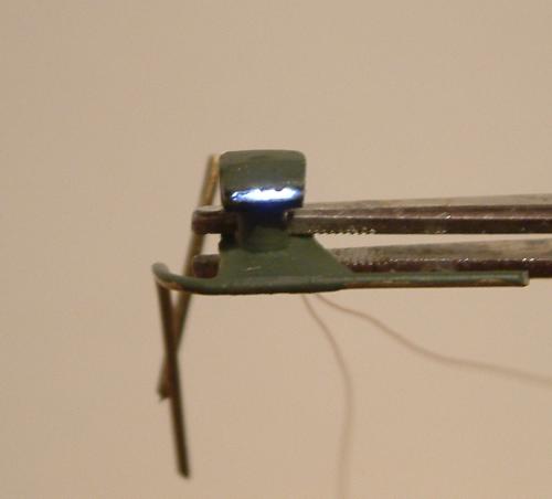 Als Leutmittel verwende ich weisse SMD-LEDs Typ 0605 welche mittels Kupferlackdraht (Fädeldraht) mit Strom versorgt werden.