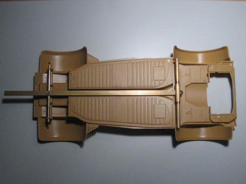 als nächstes mal alle Teile soweit wie möglich zusammengebaut oder gesteckt. Der Blechstreifen in der Mitte dient nur als vorläufige Befestigung der Strebe. Später werden noch jeweils vorne und hinten ein Befestigungsstück in den Tunnel ind Bodengruppe geklebt in welche die Strebe dann verschraubt werden kann.