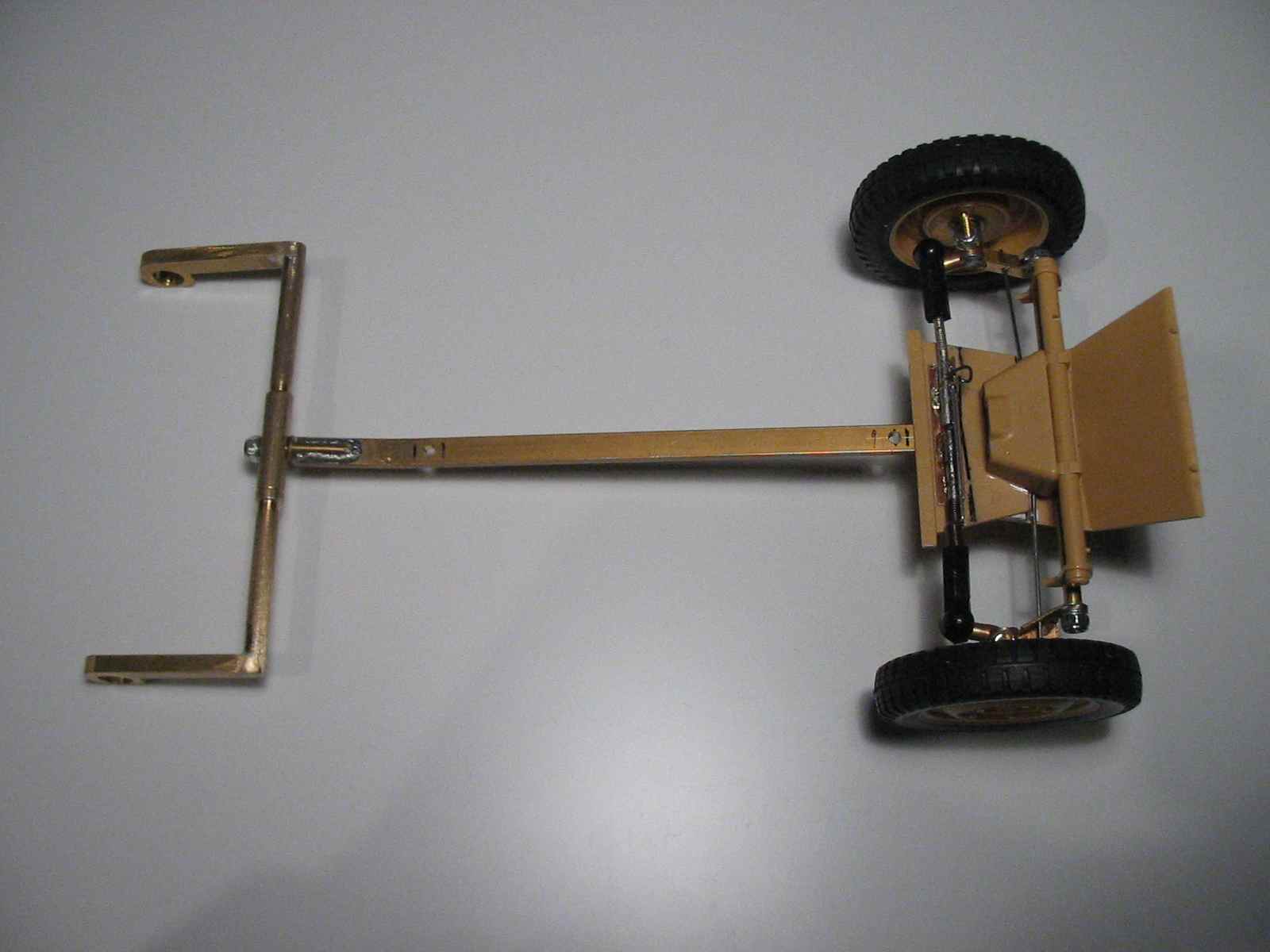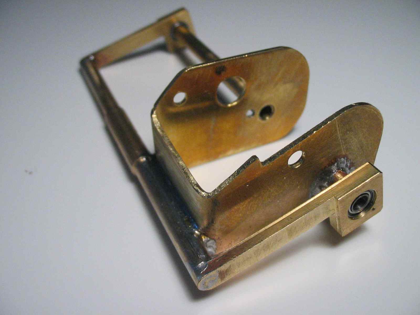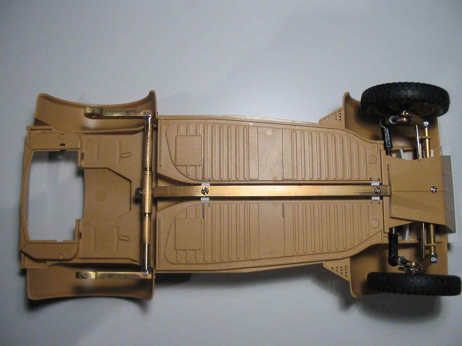 der Messingstreifen diente nur als Bauhilfe, weil zu der Zeit die Anschraubpunkte für die Strebe in der Bodengruppe noch nicht vorhanden waren. Später kommt er nichtmehr zur Verwendung.