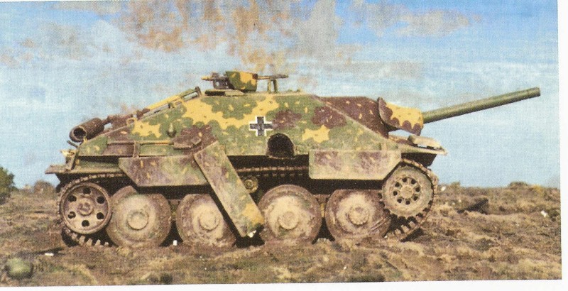 Da habe ich sogar ein Farbfoto aus Frankreich, welches sehr gut die originalen Farbtöne am Hetzer wiedergibt und somit auch eine wertvolle Hilfe bei der Lackierung meines KöTis war: