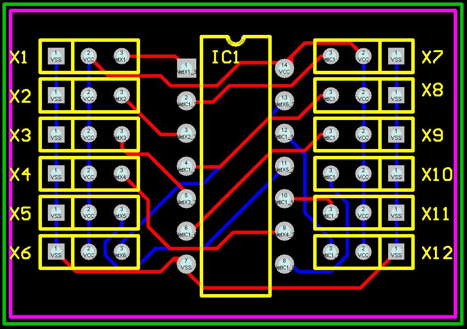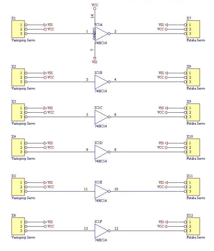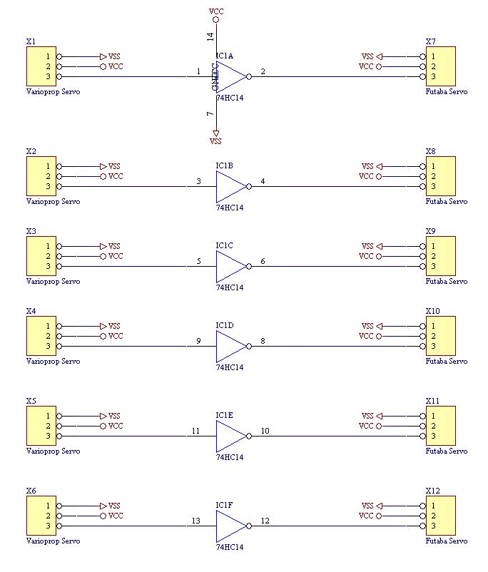 In der Schaltung ist dazu ein einfacher Baustein mit sechs unabhängigen logischen Invertern