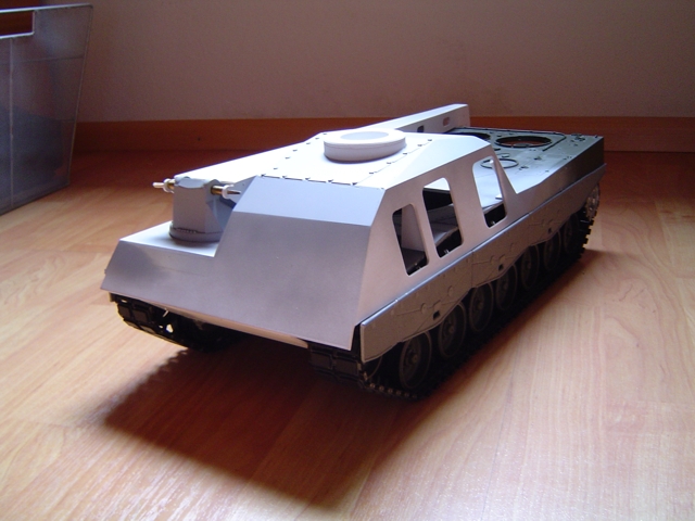 Als nächstes ist geplant die Schräge der Bugwand 1 cm nach oben zu verlängern, da dieses auch beim Vorbild gegenüber des Kampfpanzers so ausgeführt ist.