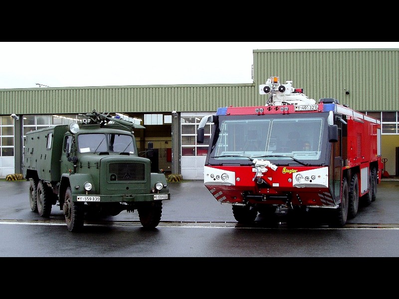 Ich weiß bloß noch von meiner Bundeswehrzeit in Wunstorf, daß die Flugplatzfeuerwehr die Dinger gern auch mal auf dem Fliegerhorst zu ihren jeweiligen (vermutlich in der Bereitschaft liegenden) "Tätigkeiten" mitgenommen hat. Einerseits war es ein nettes Spektakel wenn die Dinger durch die Gegend wummerten, andererseits waren dann die Parkplätze vor der Truppenküche oder der Sporthalle natürlich zum großen Teil belegt ...