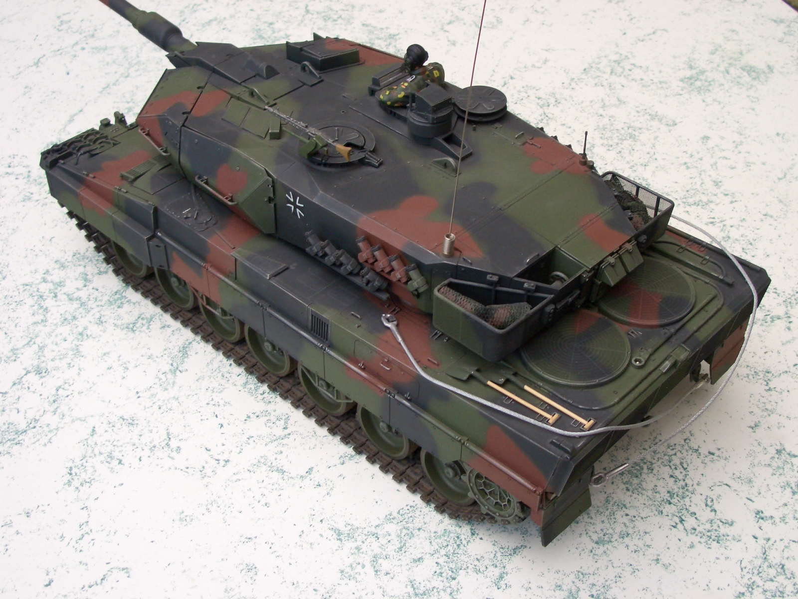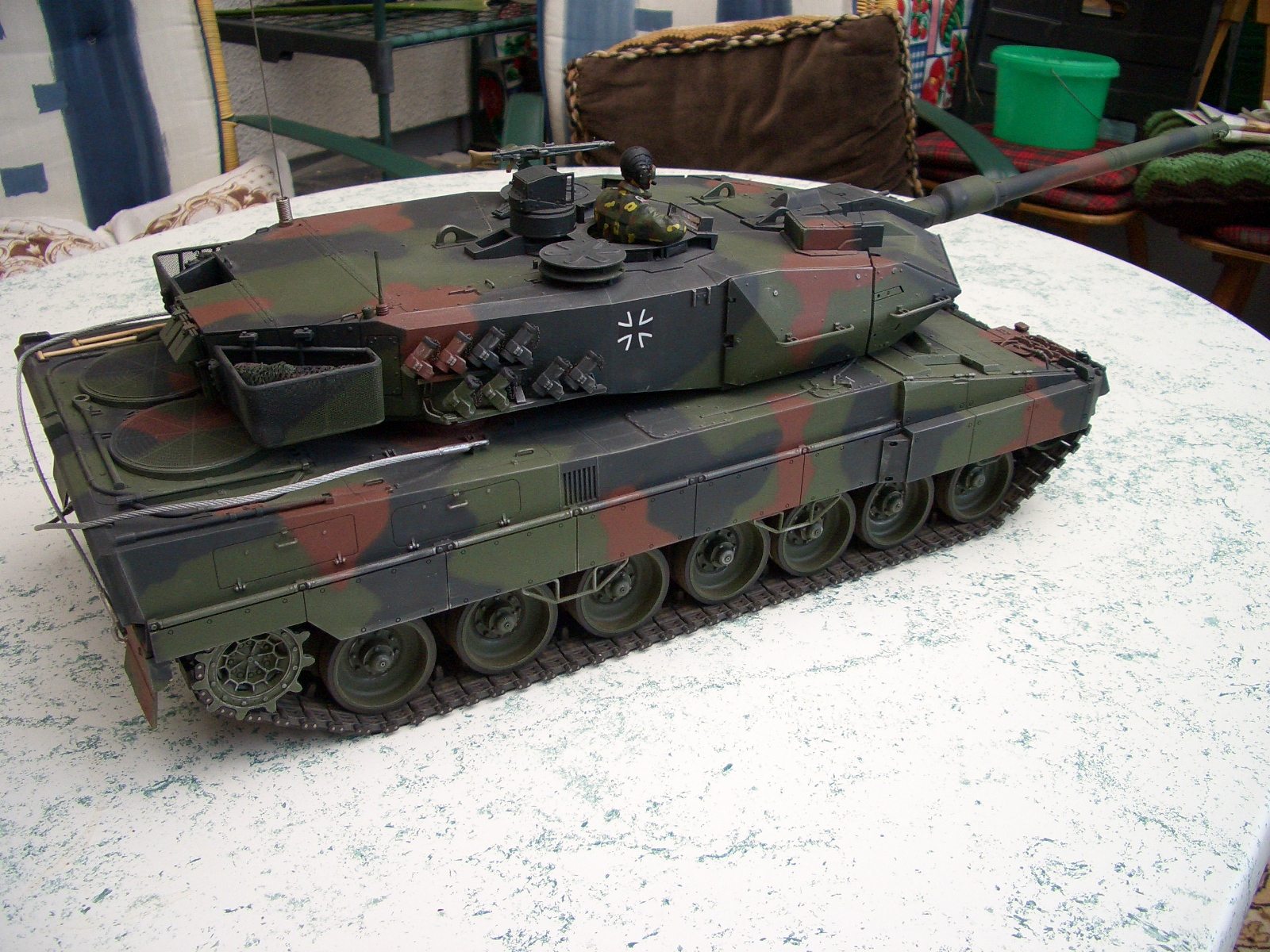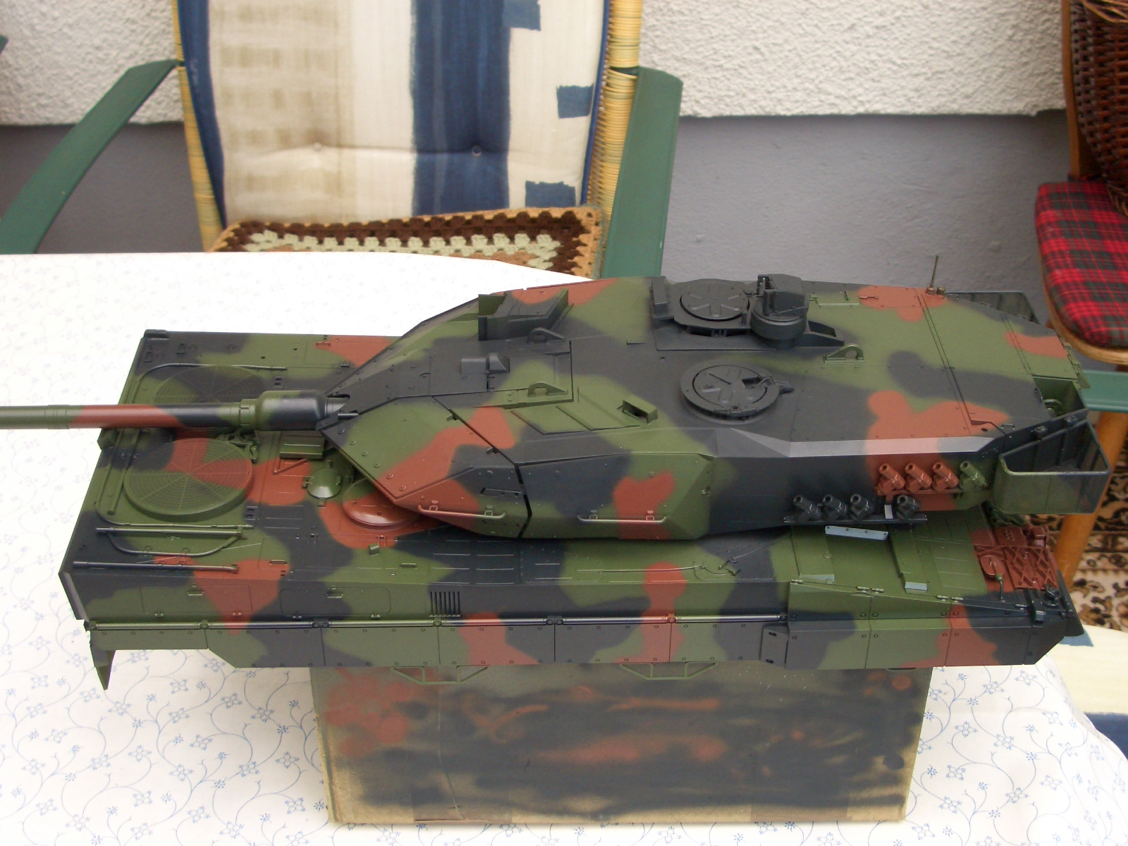 Hallo hier noch einige Bilder vom fertigen Leo 2.Das Rot kommt immer nochzu grell rüber in natura sieh es besser aus ,habe ihn auch nur leicht gealtert.