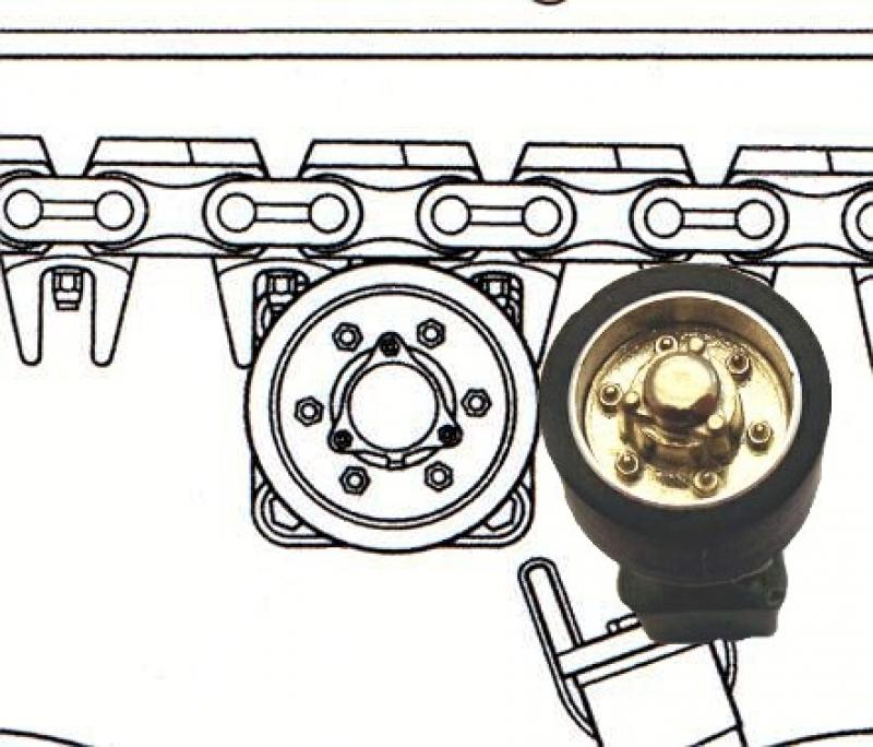 Da die Fahrzeuge des ersten Bauloses keine Kettenschürzen hatten sind die Stützrollen incl. der Halter ersichtlich. Die derzeitigen Lösungen sind nur für Verdeckte Stützrollen und Halter geeignet.