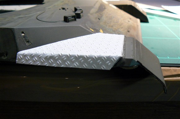 Im Bereich des vorderen Kettenkastens sind die Trittauflagen aus Riffelblech.