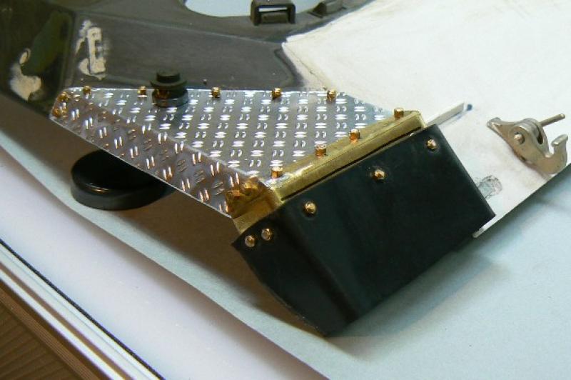 Danach aus 0,8mm Messingblech einen "Kotflügel" gebaut, der mir später als Halterung für die Gummies dient: