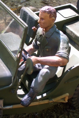 Hier ein Jeep mit einem lässigen Fahrer. -- Einen Vorsprung im Leben hat, wer da anpackt, wo die anderen erst einmal reden. - John F. Kennedy