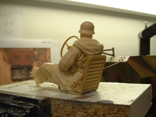 So die Figur habe ich nochmal nachgearbeitet , das Gerödel im Rücken ist komplett weggefräst worden , der Fahrersitz wurde in die Figur eingefräst , damit sich eine gescheite Sitzhöhe ergibt .