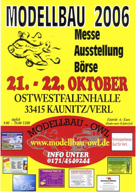 Hallo, Info !! Am 21/22.10 Ist Modellbaumesse in 33415 Kaunitz. Nesse Ausstellung und Börse.