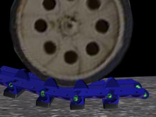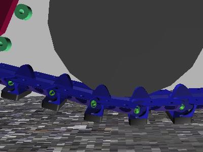 Das zu überfahrende Glied hat sein Polster bereits mit dem Gelenk auf der Straße, steht aber noch schräg nach oben zum Treibrad hin. Wird es nun überfahren, dann klappt es auch nach unten in die "Brückenposition", dabei dreht sich(!) aber das Polster auf der Straße unter dem belastenden Rad und radiert dabei sein Gummi ab - jedesmal ein kleines bißchen mehr...
