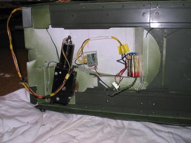 Ja ja, das Foto beweist es....der Schalter für den 9V Block wird noch ordentlich in die Innenwand der hinteren Staukammer (da kann man bei mir die Klappe öffnen) verlegt. Sieht so unordentlich aus.