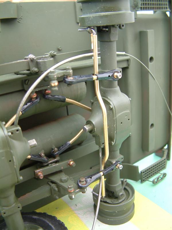 Da ich leider gestern Abend nicht mehr die Finger von dem Modell lassen konnte, reiche ich hier noch ein Bild nach, denn zwischenzeitlich habe ich begonnen, die Hydraulikleitungen der Winden nachzubilden. Dummerweise finden sich auf den verschiedenen Vorlagenfotos und in den Büchern unterschiedliche Varianten. Bei einigen Fahrzeugen wurden die Leitungen seitlich am Chassis verlegt und bei anderen liegen Sie oben auf den Chassis.