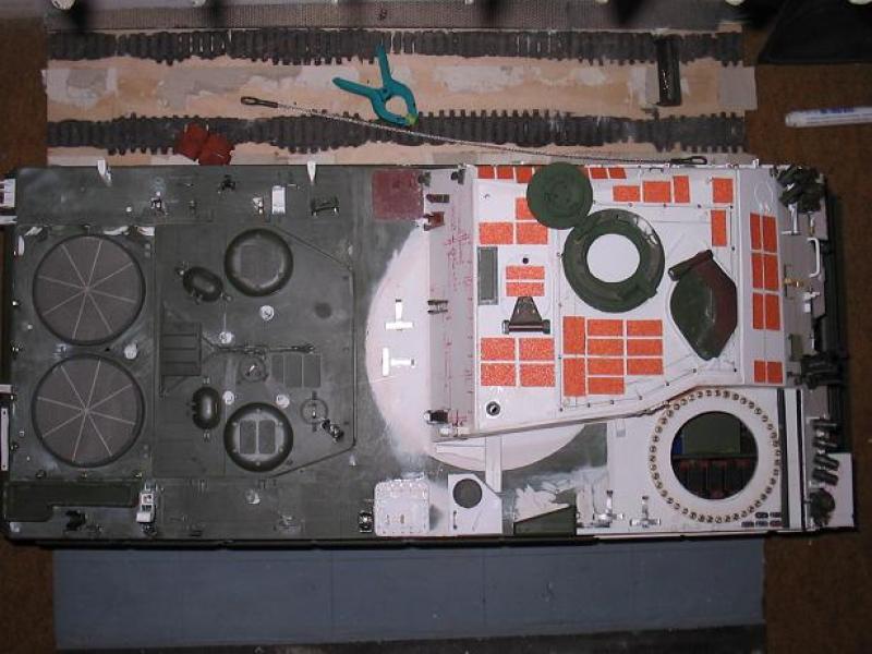 für Antirutschbeläge verwende ich profanes Schleifpapier. Bei 1:16 so ca. 10mm breit. Aufgeklebt mit profanem Uhu. Die Ecken etwas abgerundet mit einer naaaa "profanen" Schere. Mehr nicht. Hab mit 400er angefangen, war nach dem lackieren jedoch glatt. Jetzt nehm ich immer grobes 100er. Siehst du auch hier auf dem Leo2 Turm oder in Massen auf meinem Büffel. Der hat soviel Beläge, das war schon lästig.
