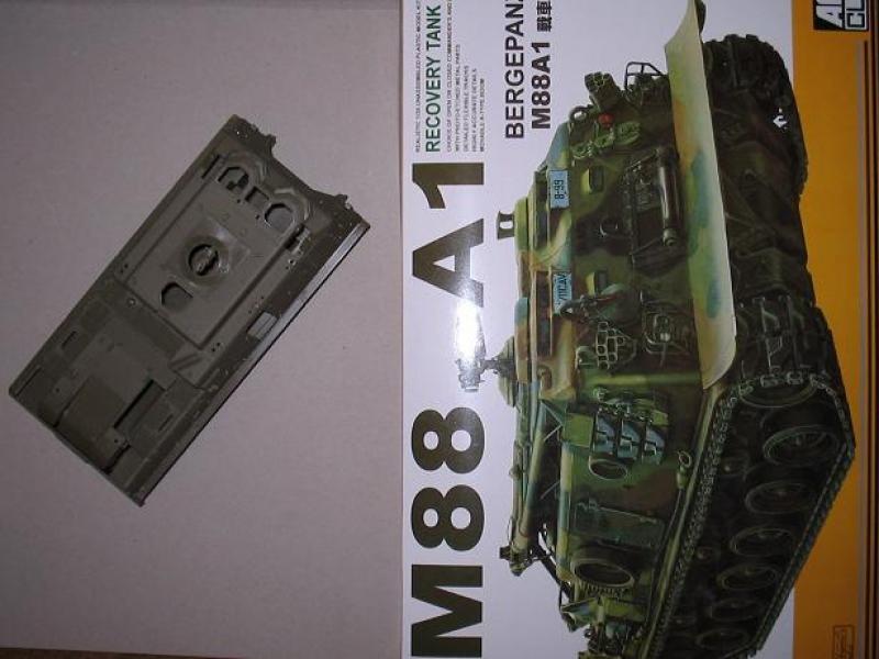 Ich plane den Bau eines Bergepanzers M88. Als Basis soll der Tamiya "Pershing" Bausatz dienen. Er soll Unterwanne und Fahrwerk liefern. Ich weiß zwar, dass hier Modifikationen erforderlich sind, denke aber, die sind hinzukriegen.
