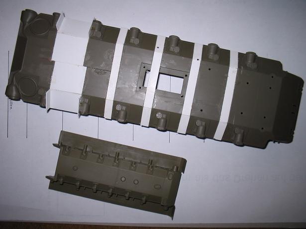 Jetzt gehts richtig los. 1:35 Vorbild ist da, 1:16er Pershing Wanne auch. Pershing Wanne zu kurz, Abstände der Achsen passen nicht. Wegschmeissen? Nein- schreddern.
